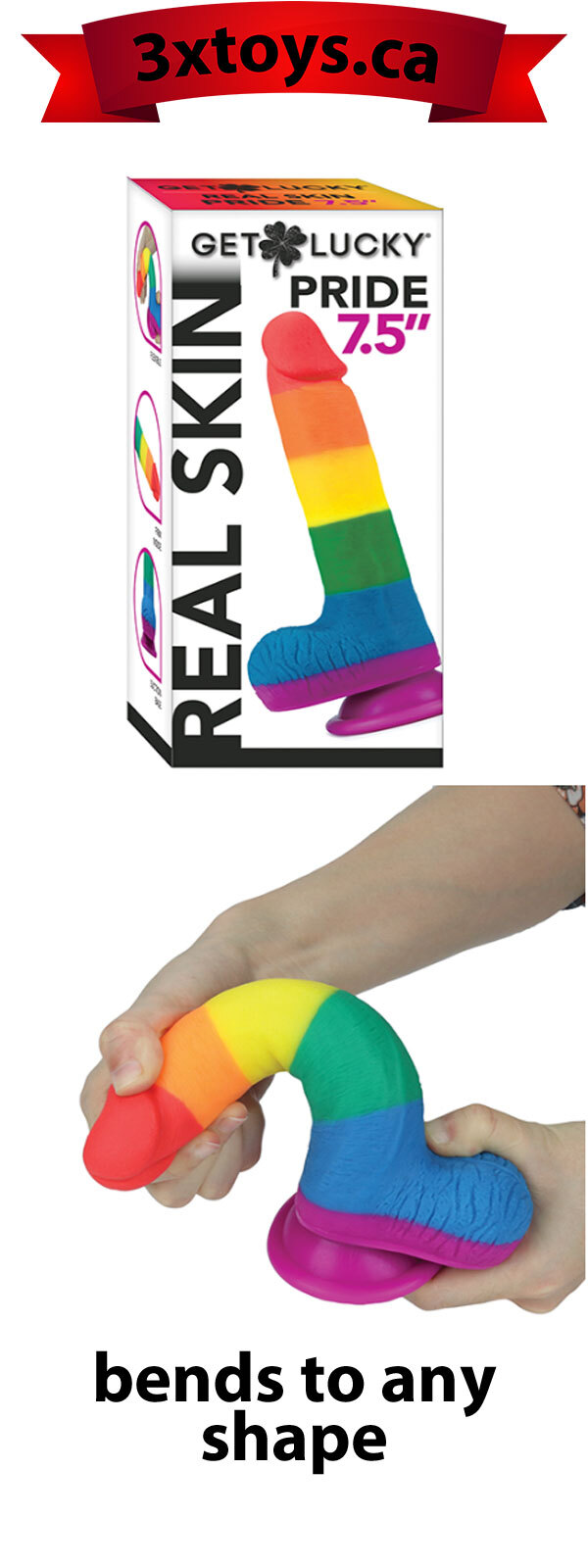 Get Lucky Real Skin Series. Dual layered, sliding skin technology for life like feel. Soft outer skin with firm center. Flexible, bends to any shape. Phthalate free, latex free, odor free. Suction base is perfect for hands free or harness play. Waterproof and easy to clean.