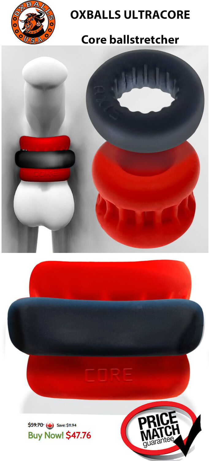 ULTRACORE system is for the really big ballers that dig the most bag-gripping stretch! You get the amazing CORE ballstretcher—it’s got outer ribs for super long stretch: it stays taller on your sack with more padded grip in the middle for a fatty bag-squeeze.
